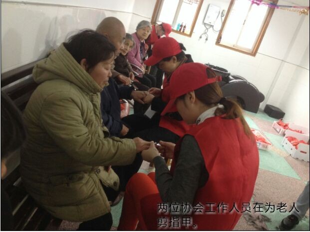 2014年4月17日上午,常州市武进区行业场所协会工作人员等一行六人,冒雨来到常州市武进区夕阳红康乐中心(养老院),开展以“夕阳无限好,黄昏有所依”为主题的公益服务活动。协会工作人员团结合作,分成三组:两人为老人们修剪头发,两人为老人们修剪指甲,两人为老人们分发水果礼包……陆续前来的老人们在享受到优质服务后都交口称赞,称赞此次活动务实、温暖、贴心。临近中午,此次公益活动共为老人剪发近40人次,修剪指甲近20人次,分发水果礼包100份。常州市武进区行业场所协会此次不仅为养老院的老人们提供了实际需要的服务帮助,也展现出了协会所具备的人文关怀精神。
