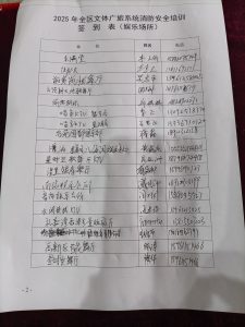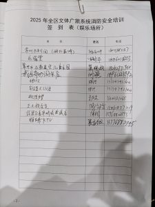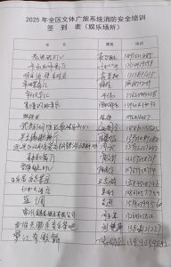2025年11月5日下午1:30,在常州博物馆二楼报告厅,文广旅局组织各辖市区局组织属地文化艺术类校外培训机构、网吧、娱乐场所负责人到会参加培训。徐晋生副局长组织大家观看消防安全警示片,针对冬季火灾高发期特点,武进旨在强化季节性风险防控,巩固前期整理成果,确保年末、年初安全稳定,会议聚焦防风险、除隐患、保平安的主题,推动责任落实与机制创新。提升区域消防安全韧性。歌舞娱乐、游戏游艺的业主共到54人参加了培训。